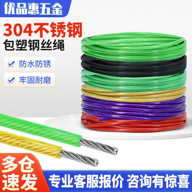 304不锈钢包塑钢丝绳 胶皮大棚塑包过塑钢丝绳钢绞线 细软钢丝绳