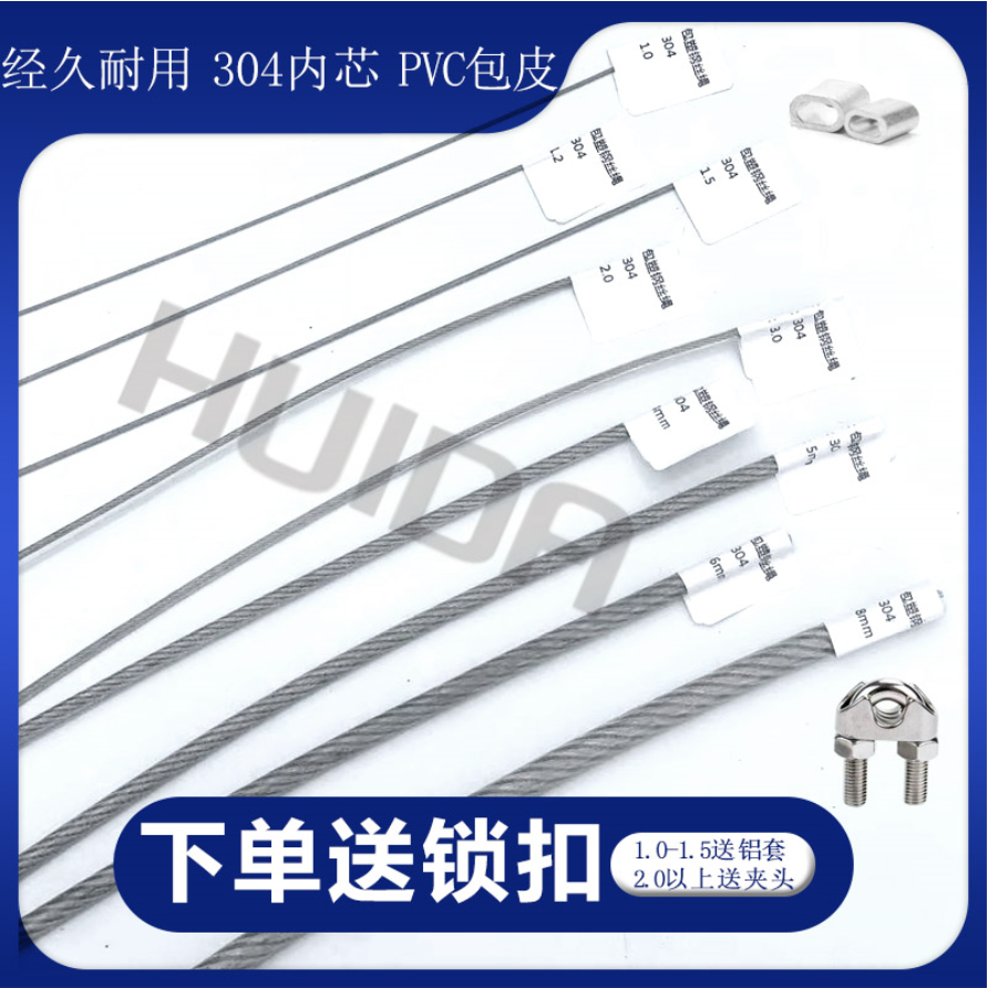 304不锈钢钢丝绳粗细晾衣架晾衣绳不锈钢包塑包胶软钢丝绳全尺寸