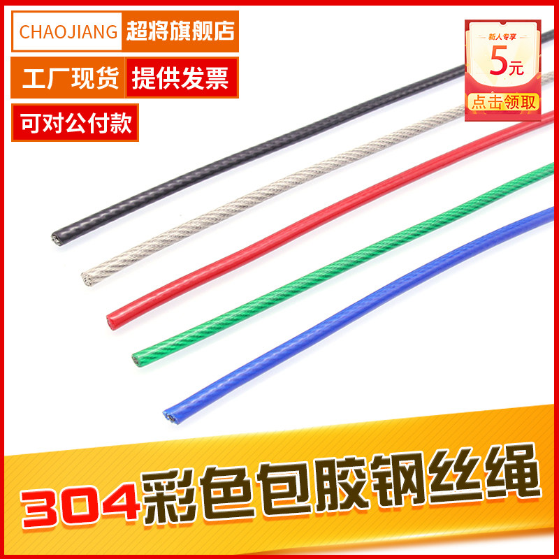 304不锈钢钢丝绳包塑1 1.5 2 3 4 5mm钢丝线超细软晾衣绳子柔软粗