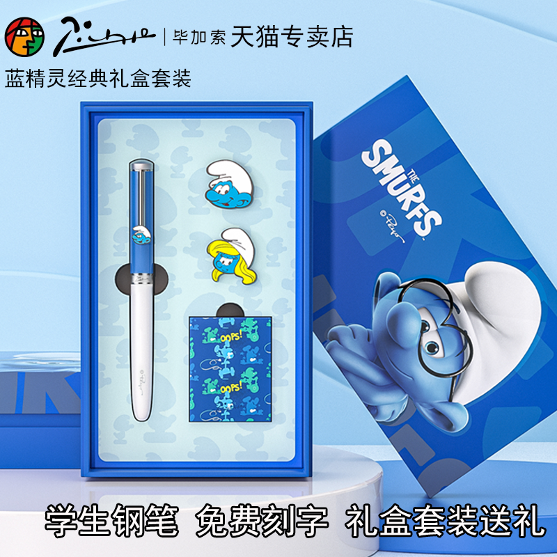 毕加索官方935蓝精灵联名款钢笔小学生练字三四年级墨水笔墨囊可替换高档礼盒装男女士办公送礼精致生日礼物