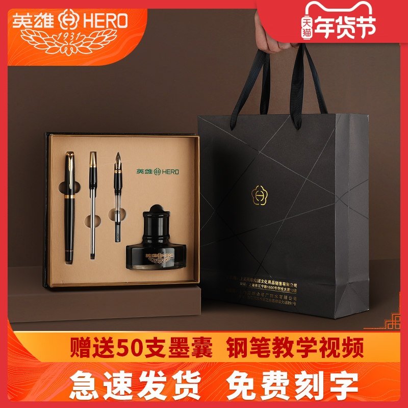 【年会礼品】hero英雄钢笔高档礼盒套装热销榜墨水笔官方正品签字笔商务男女士送礼老师美工弯头定制logo