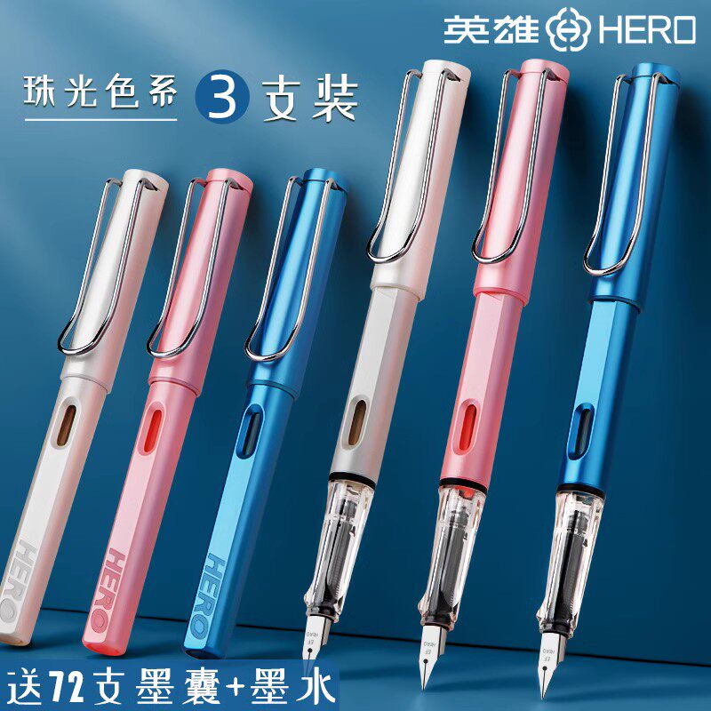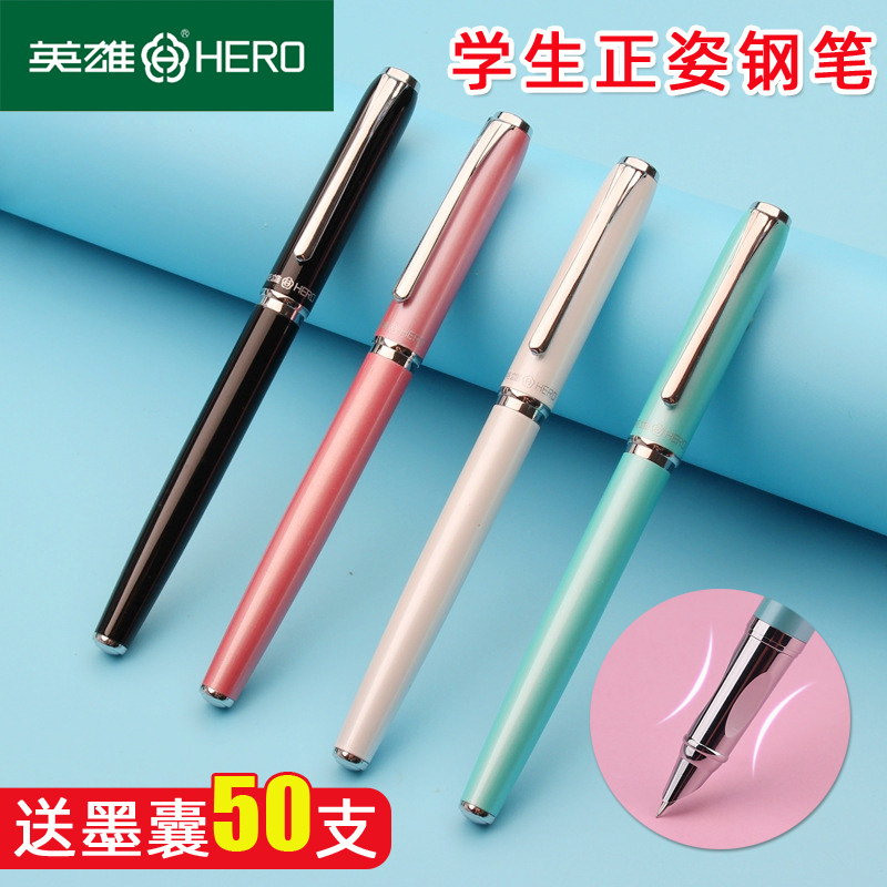 HERO英雄钢笔正品329-2箭标学生专用练字书法616墨水笔三四五年级怀旧经典老式依金笔成人男士老师教师批改