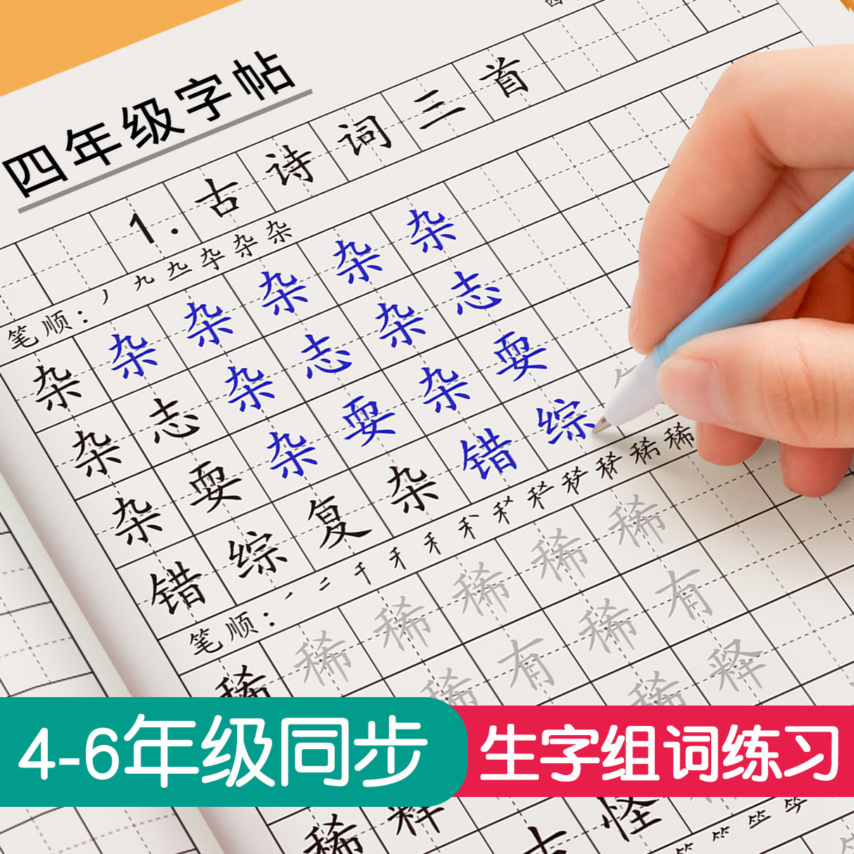 四年级字帖人教版小学生上册下册部编人教版语文英语课本同步练字帖楷书生字笔画笔顺临摹硬笔书法钢笔练字本习字帖儿童每日一练
