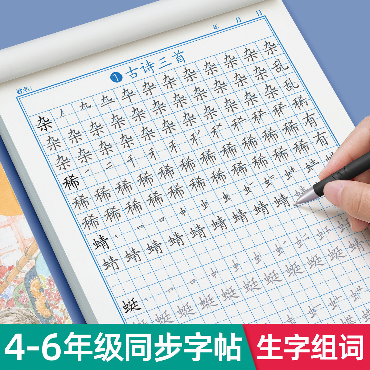 四年级上册下册字帖每日一练小学生专用练字帖语文人教版同步五年级六年级生字组词成语写字笔顺描红楷书练字本钢笔硬笔书法初学者
