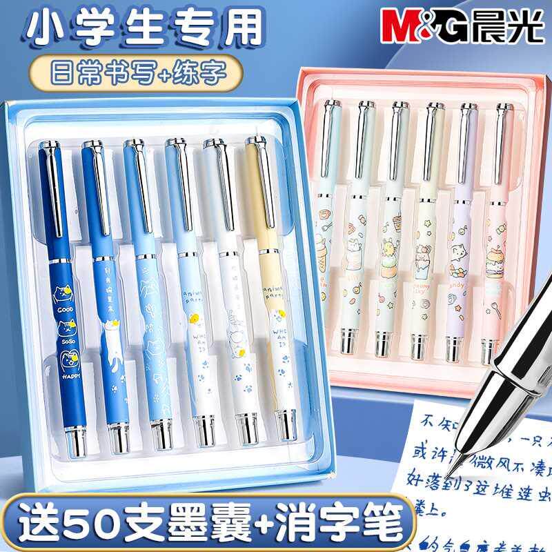 英雄牌钢笔3328银夹学生专用练字书法正姿小笔尖0.38特细男女生性小学生五六四三年级儿童初学者墨囊可替换