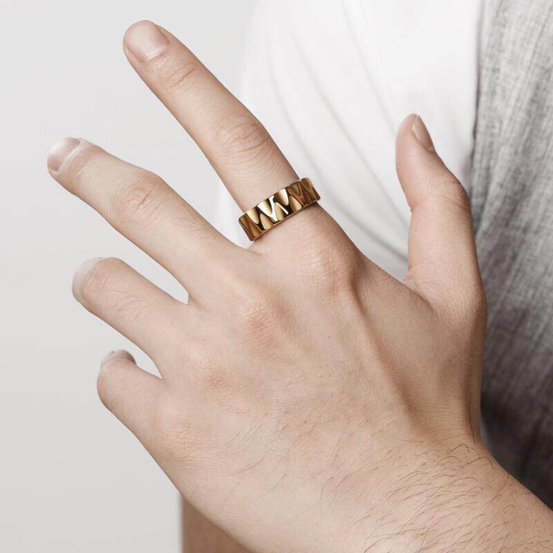 飒雅戒指男款金色宽边水纹潮人饰品单身时尚个性刻字钨金食指指环