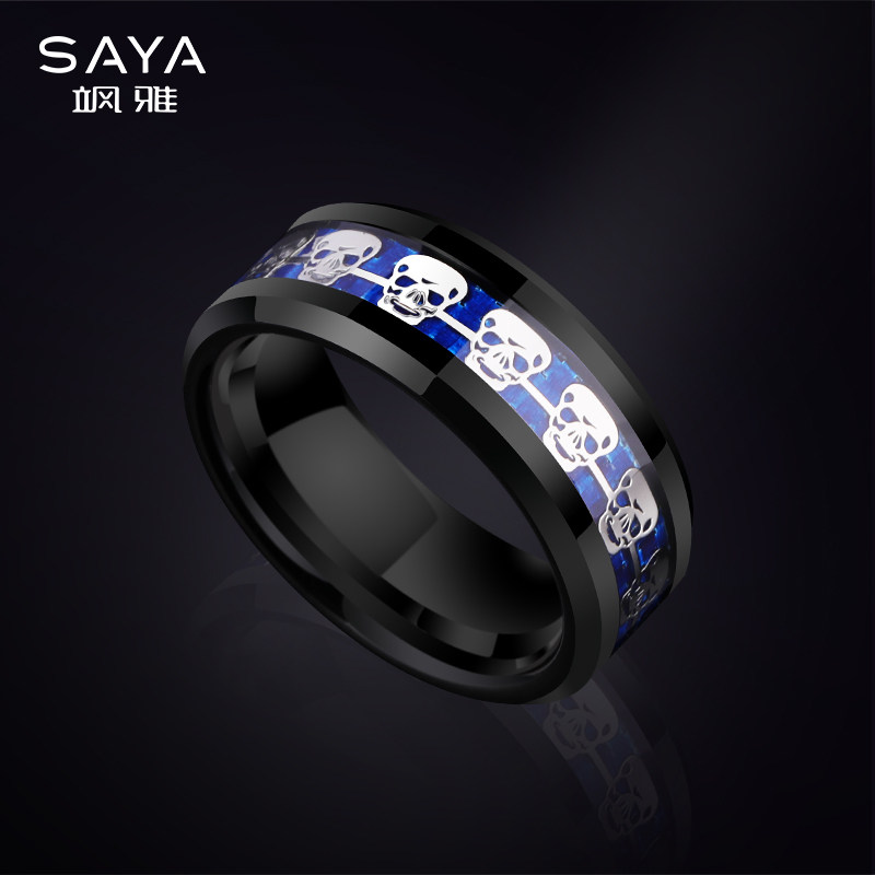 飒雅戒指男款钨金镶嵌骷髅头经典个性复古朋克欧美创意饰品指环男