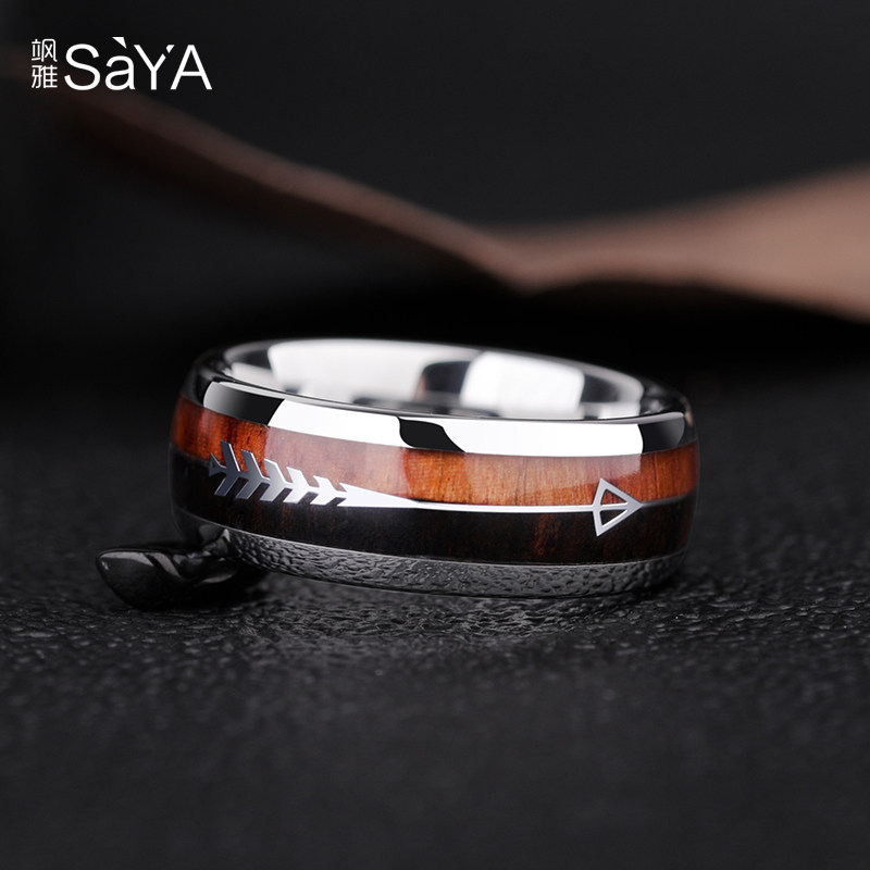 飒雅男士戒指相思木朋克戒子弓箭矢钨金戒指男大气儒雅男戒装饰品