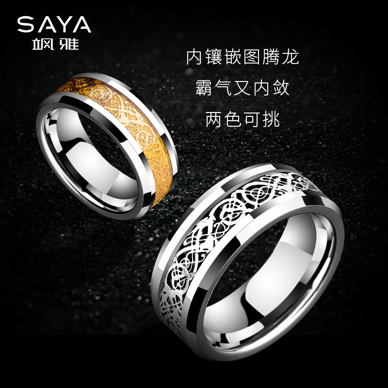 飒雅男士戒指钨金指环时尚金色黑色龙纹饰品食指个性首饰单身尾戒