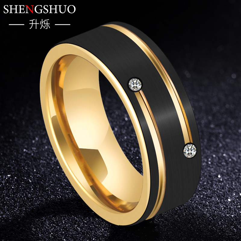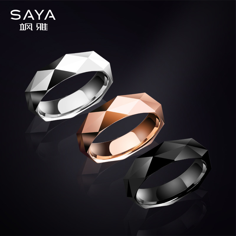 飒雅钨金戒指男士指环风格欧美简约时尚饰品婚戒首饰潮钨钢对戒女