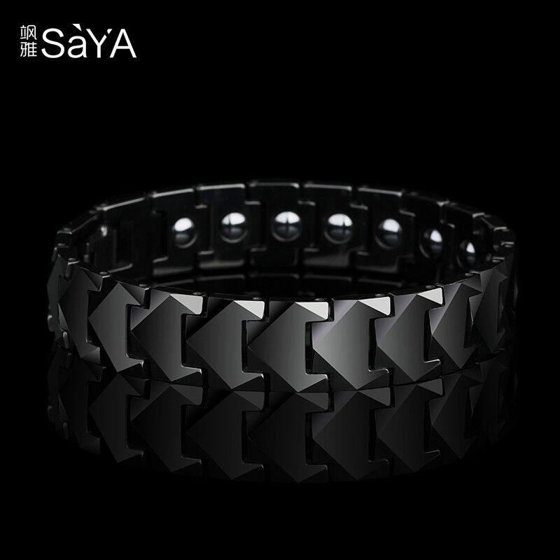 飒雅钨金男士手链磁石黑色宽版夸张欧美霸气男性饰品个性刻字配饰