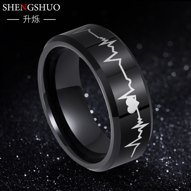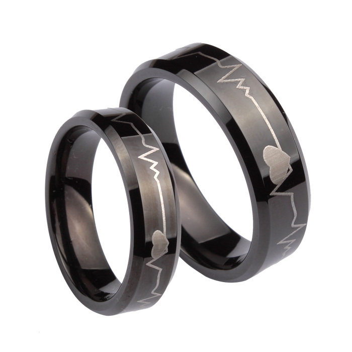 钨金情侣对戒指/指环尾戒 心电图 时尚韩版饰品 七夕情人节礼物