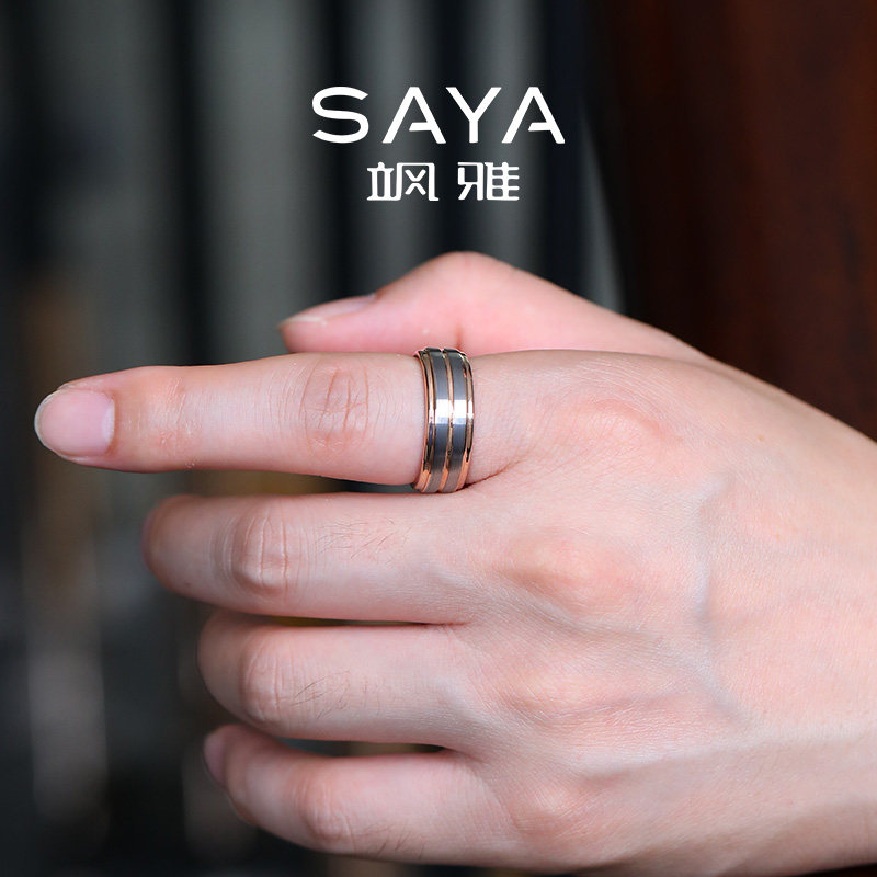 飒雅戒指男款钨金对戒女玫瑰金色戒子乌金高级感不掉色指环首饰品