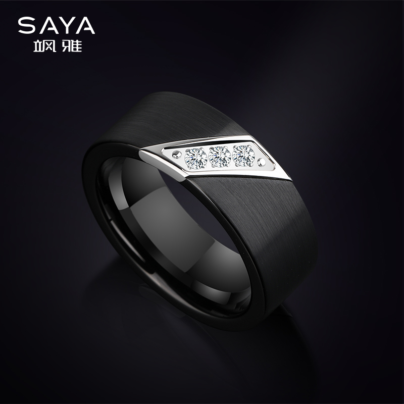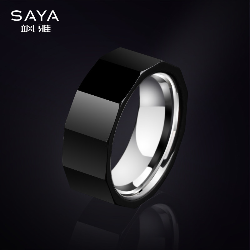 飒雅黑色钨金指环戒指男款钨钢欧美潮男时尚饰品食指单身乌金男戒