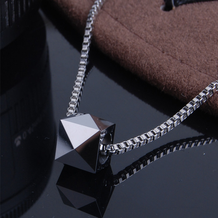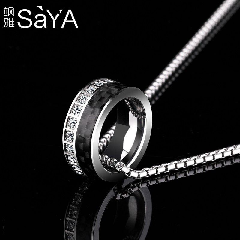 19年项链男士吊坠男个性锁骨链钨金镶嵌碳纤潮流饰品黑耀锆石项链