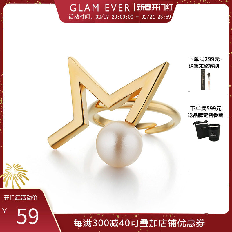 Glam Ever星星乐园系列金色钨金单珠半星戒指 潮设计师品牌指环