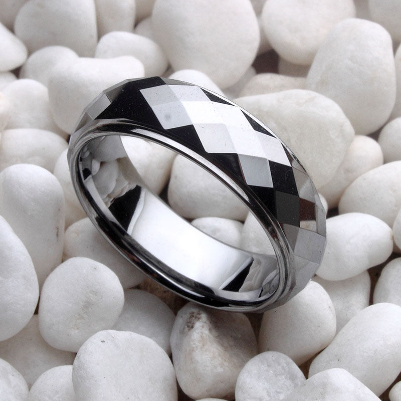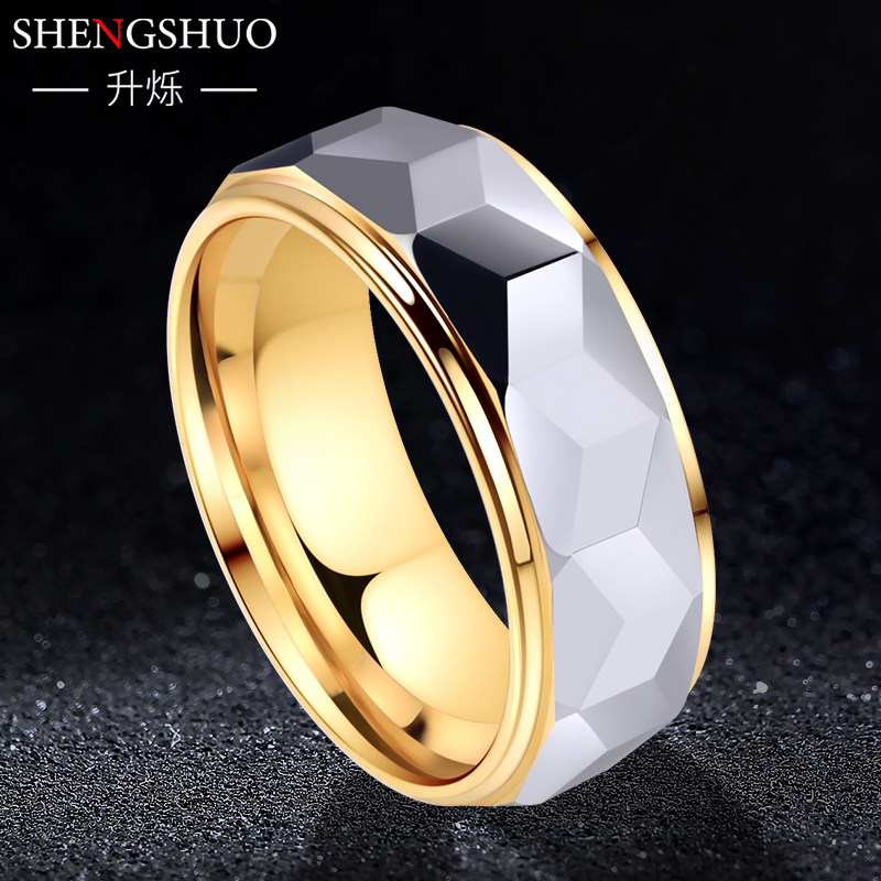 简约男士钨金切面戒指 闪亮不褪色刀刮不花指环 专柜撤柜断码清仓