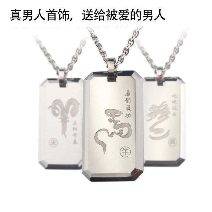 真男人 男士钨金项链 时来运转吊坠 韩版时尚配饰项坠 免费刻字