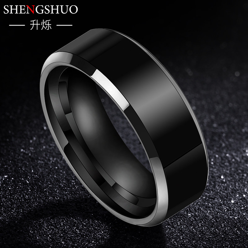 钨金光面素圈男士戒指潮男个性高级感单身宽指环钨钢潮牌食指男戒