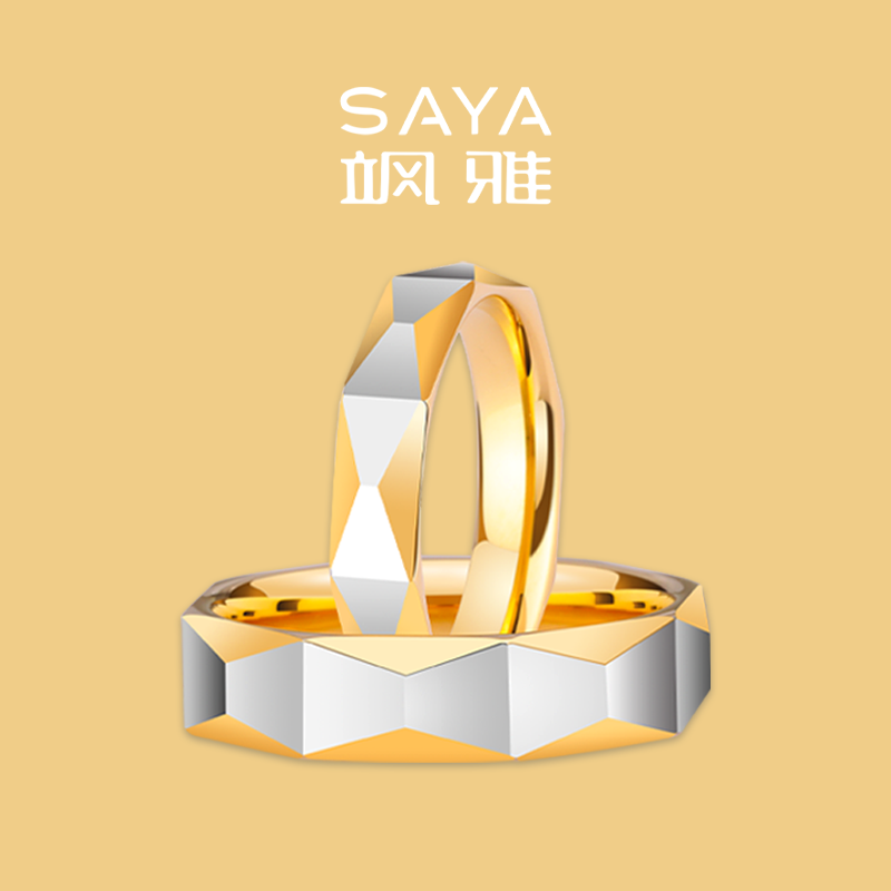 飒雅戒指男款潮钨金简约个性百搭指环小众切面食指情侣对戒女饰品