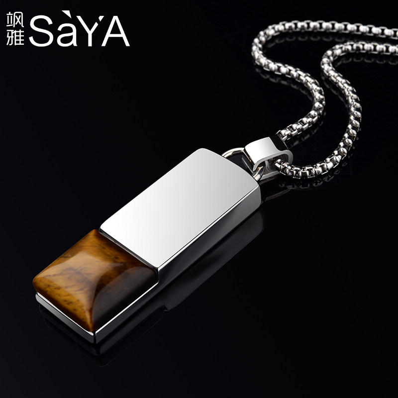 飒雅男士项链吊链吊坠韩版个性男潮虎睛石钨金饰品大项坠简约挂坠