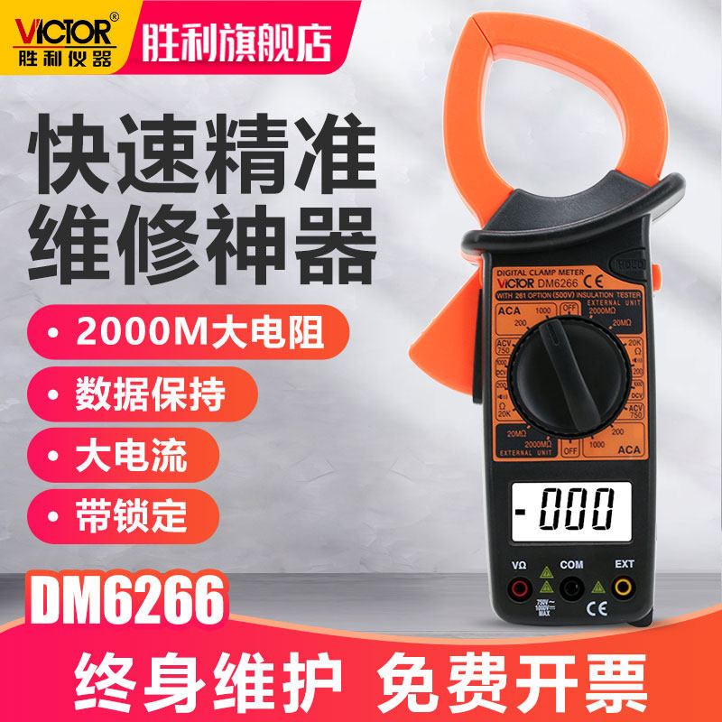 胜利数字钳形表DM6266高精度钳形电流表 钳形万用表 大电流钳型表