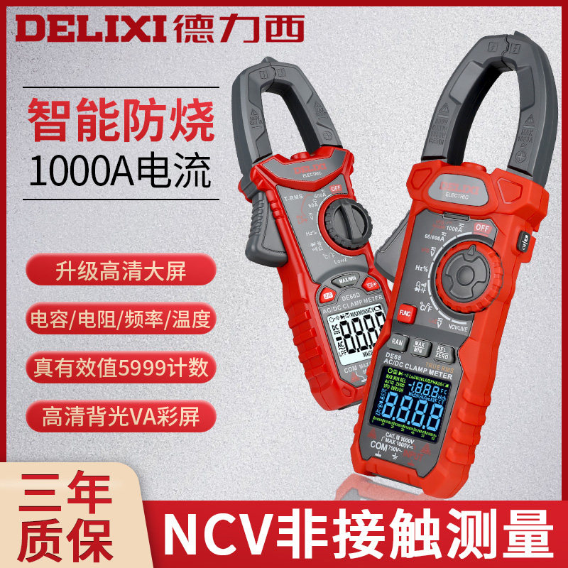 德力西数字钳形表万用表高精度全自动数显电流表电工交直流钳流表