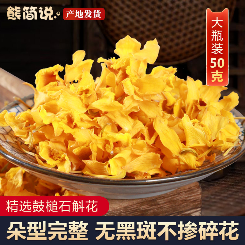 云南鼓槌铁皮石斛花干花茶干花泡茶官方天籽兰花金兰花石斛花茶