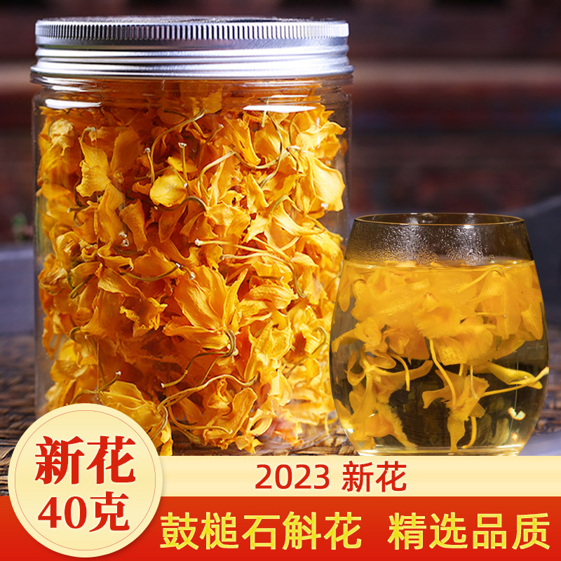 鼓槌铁皮石斛花茶干花茶新鲜特级天籽兰花 金兰花石斛茶泡茶金黄