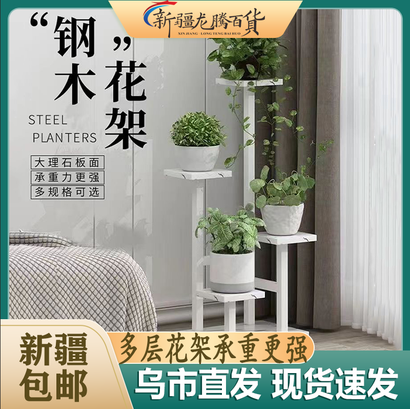 花店铁艺实木花架阳台多肉花架子客厅多层绿萝花盆架多功能展示架