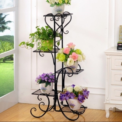 室内客厅装饰铁艺心形花架子家用现代简约落地式多层阳台花盆挂架