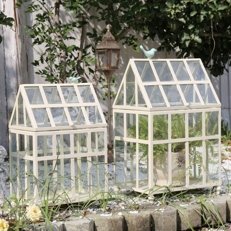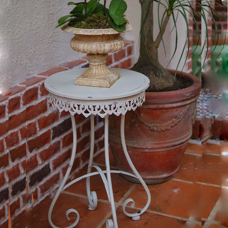 法式户外花园做旧铁艺圆桌花架庭院阳台园艺复古桌子小花几置物架