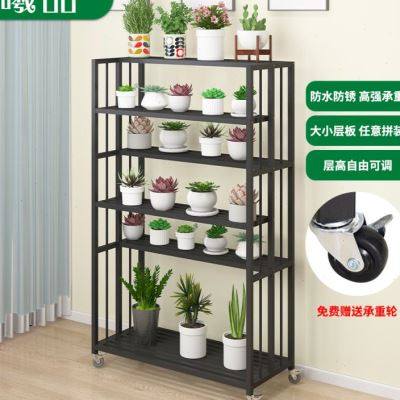 铁艺室外防水防腐可移动带轮花架置物架多层落地式客厅玄关展示架