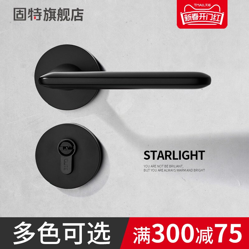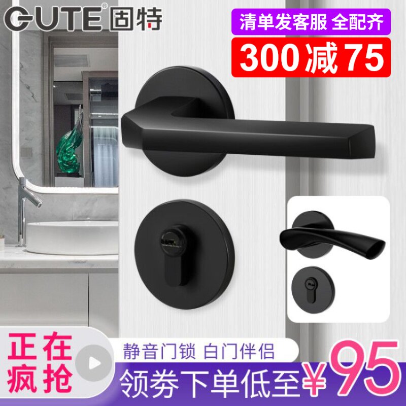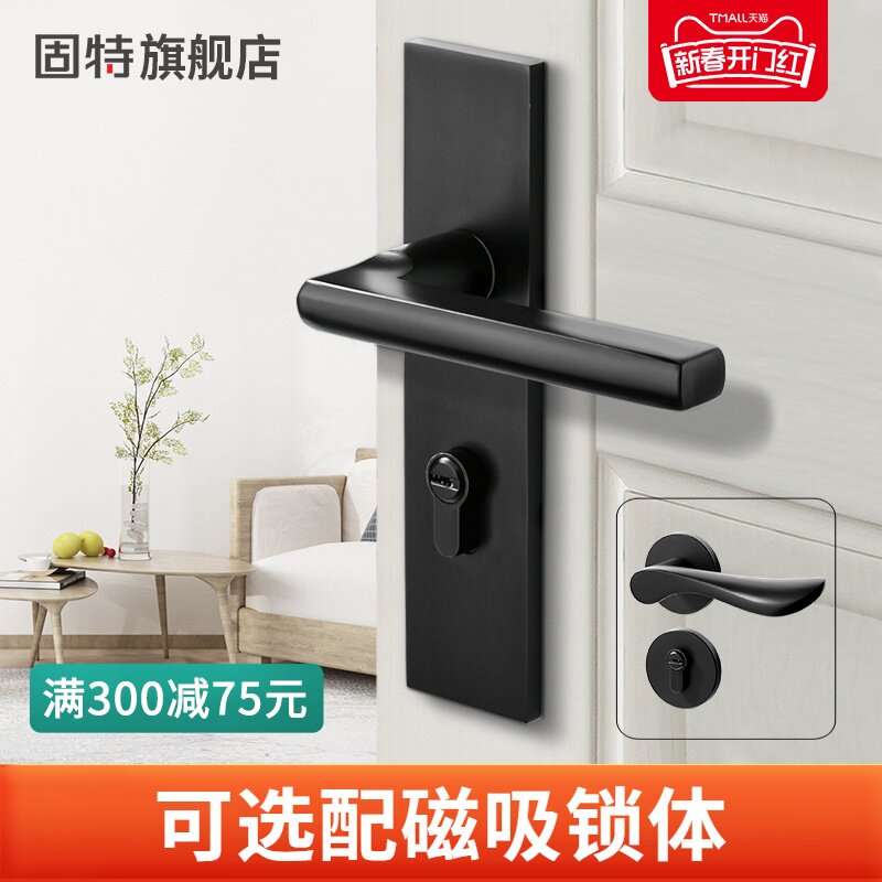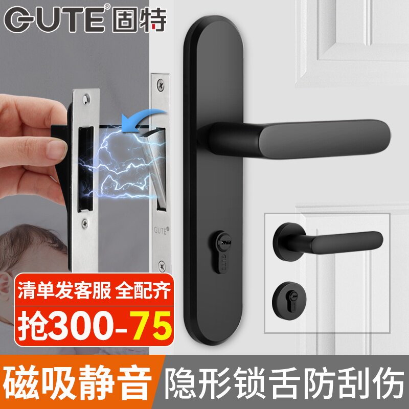 固特门锁室内家用房门锁卧室黑色门把手静音分体锁通用型磁吸锁具