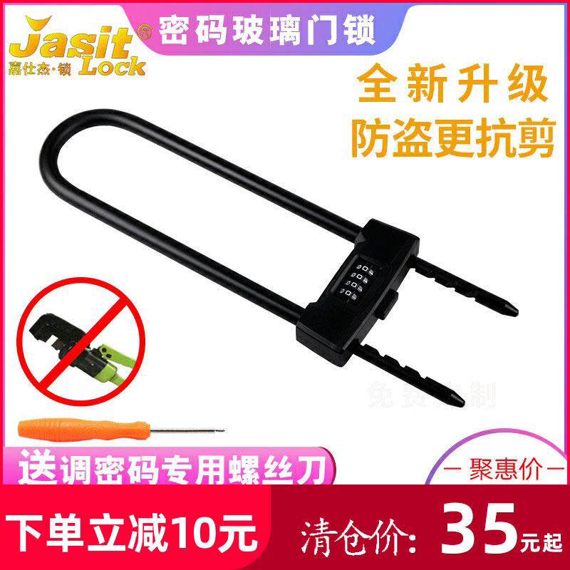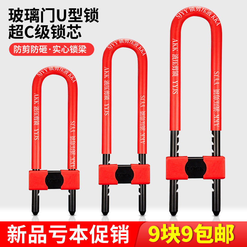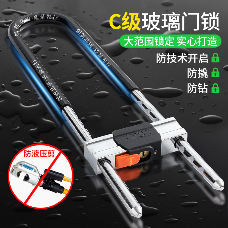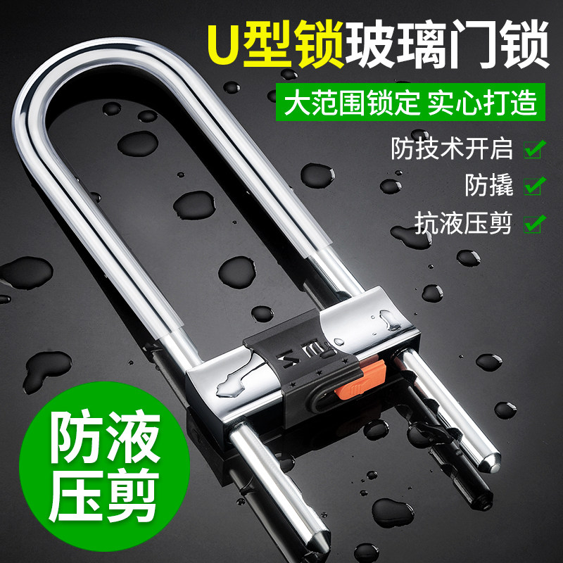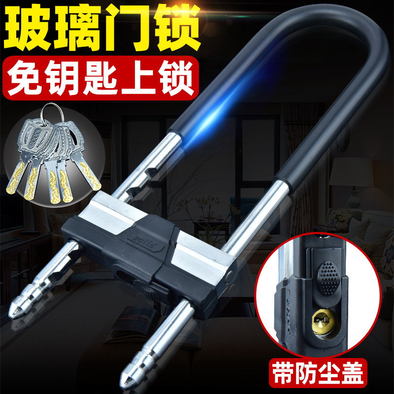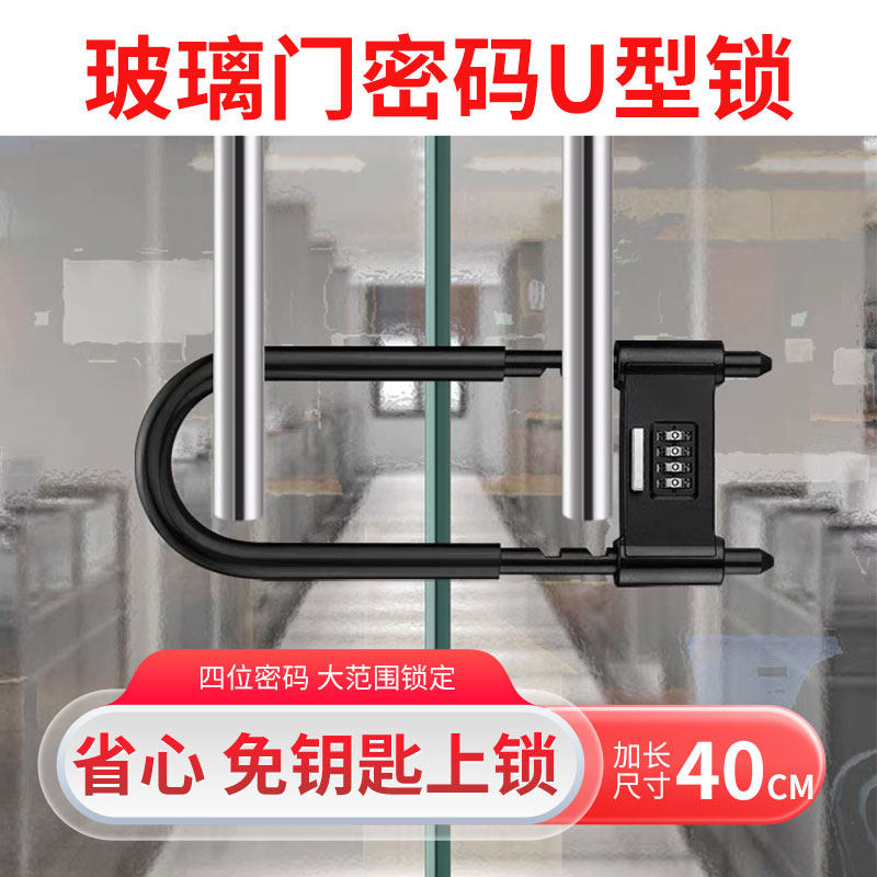 玻璃门锁U型锁锁具商铺店面推拉门插锁长锁家用室外密码防盗u形锁