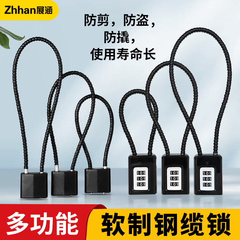 钢丝密码锁挂锁钢缆防盗电动车筐篮柜子软长绳钥匙锁头盔锁具大全