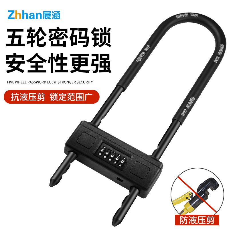 玥玛密码玻璃门锁双门插锁U型锁具店铺商铺办公室加长u形锁防盗锁