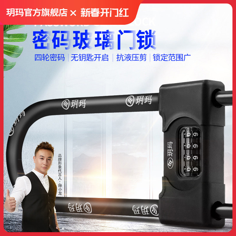玥玛密码玻璃门锁U型锁锁具双门插锁玻璃锁推拉门长锁商铺u锁室外
