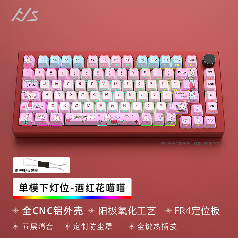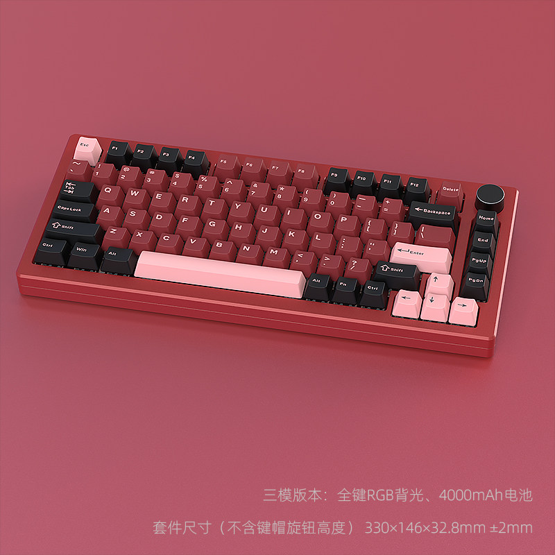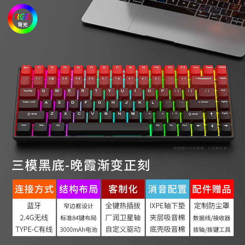 艾石头FE87/104RGB炫彩背光有线无线机械键盘电竞游戏茶红插拔轴