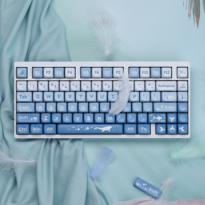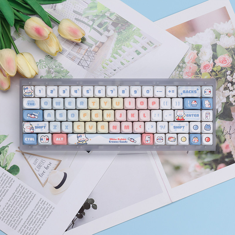 白色双皮奶布丁透光键帽 海盗船PBT双色透光 68 84客制化机械键盘