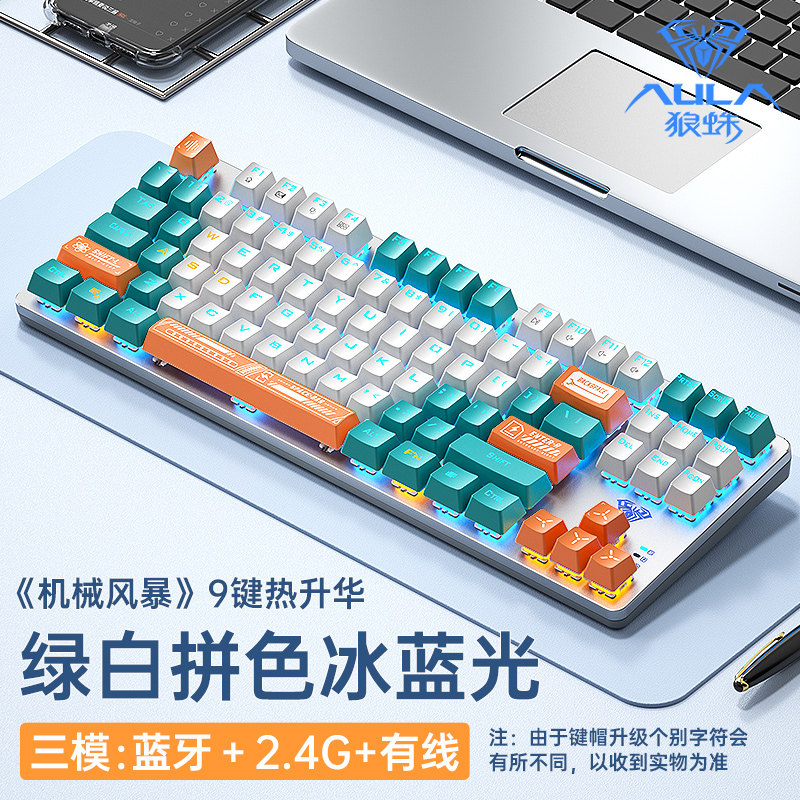 狼蛛无线机械键盘蓝牙87键有线三模小型电脑办公电竞游戏青红茶轴