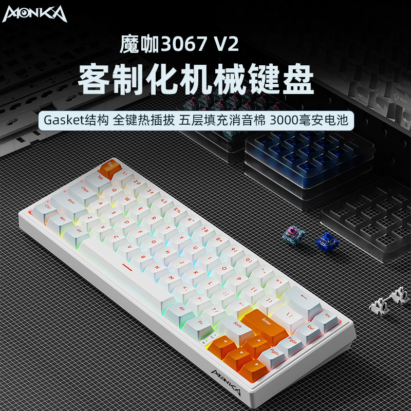 魔咖 3067机械键盘三模无线蓝牙2.4G热插拔Gasket结构PBT二色键帽