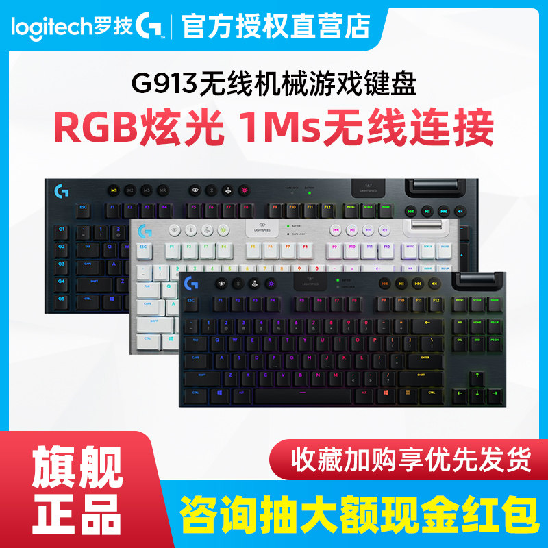 罗技G913 TKL无线机械键盘电竞游戏背光红青茶轴104/87键电脑专用