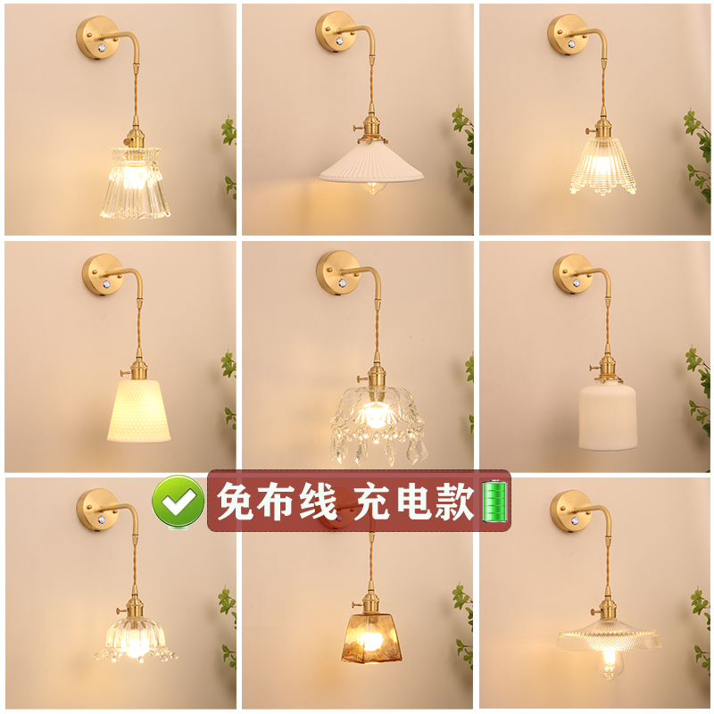 日式氛围壁灯北欧极简床头卧室民宿背景墙复古黄铜玻璃照画镜前灯