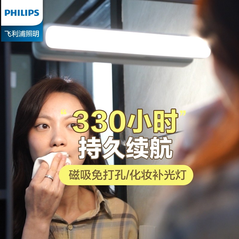 飞利浦化妆镜补光镜前灯充电免安装磁吸灯LED浴室卫生间镜柜专用
