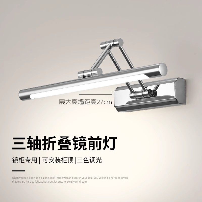 led镜前灯卫生间浴室伸缩镜柜灯卫浴三色镜灯简约梳妆台补光镜壁