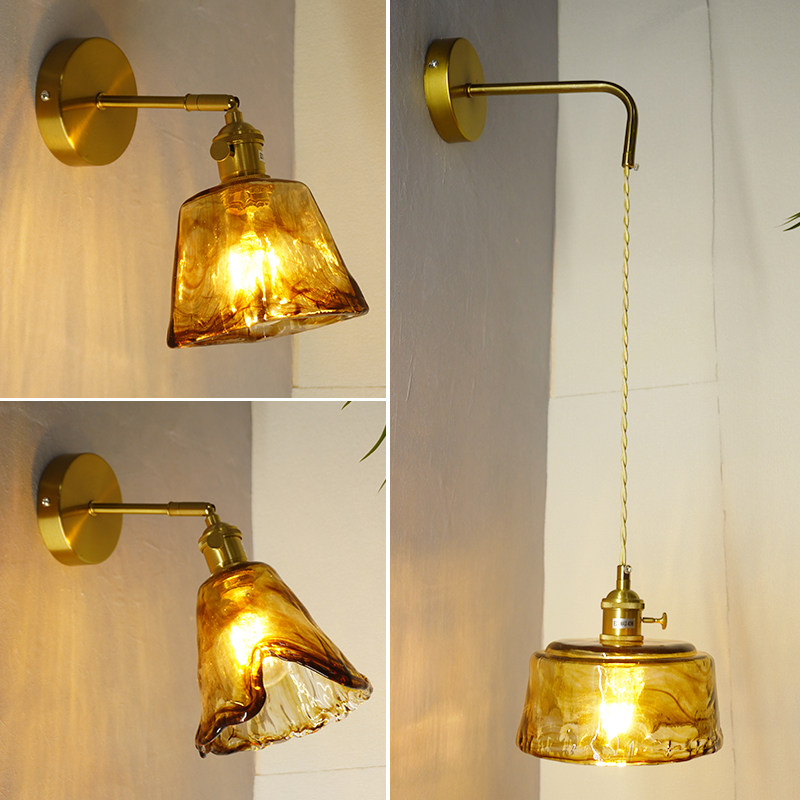 复古玻璃小壁灯日式黄铜卫生间浴室镜前灯简约民宿客厅卧室床头灯
