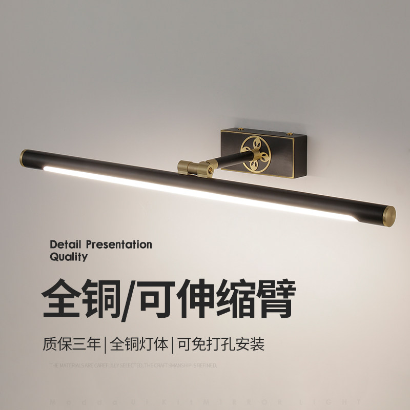 全铜led镜前灯卫生间免打孔伸缩卫浴室镜柜专用梳妆洗漱台化妆灯
