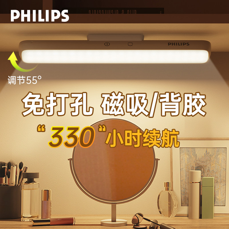 飞利浦led镜前灯充电免安装磁吸灯浴室卫生间镜柜台灯化妆补光灯