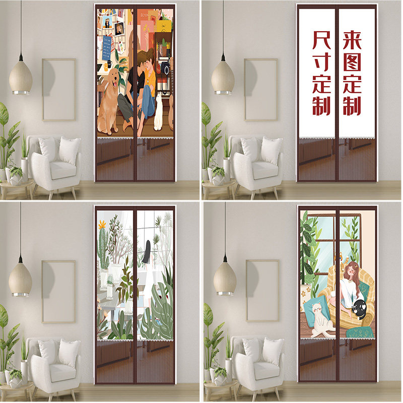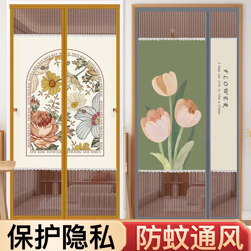 侧开防蚊门帘魔术贴免打孔家用自吸纱门金刚网隐私防蚊蝇防盗门帘